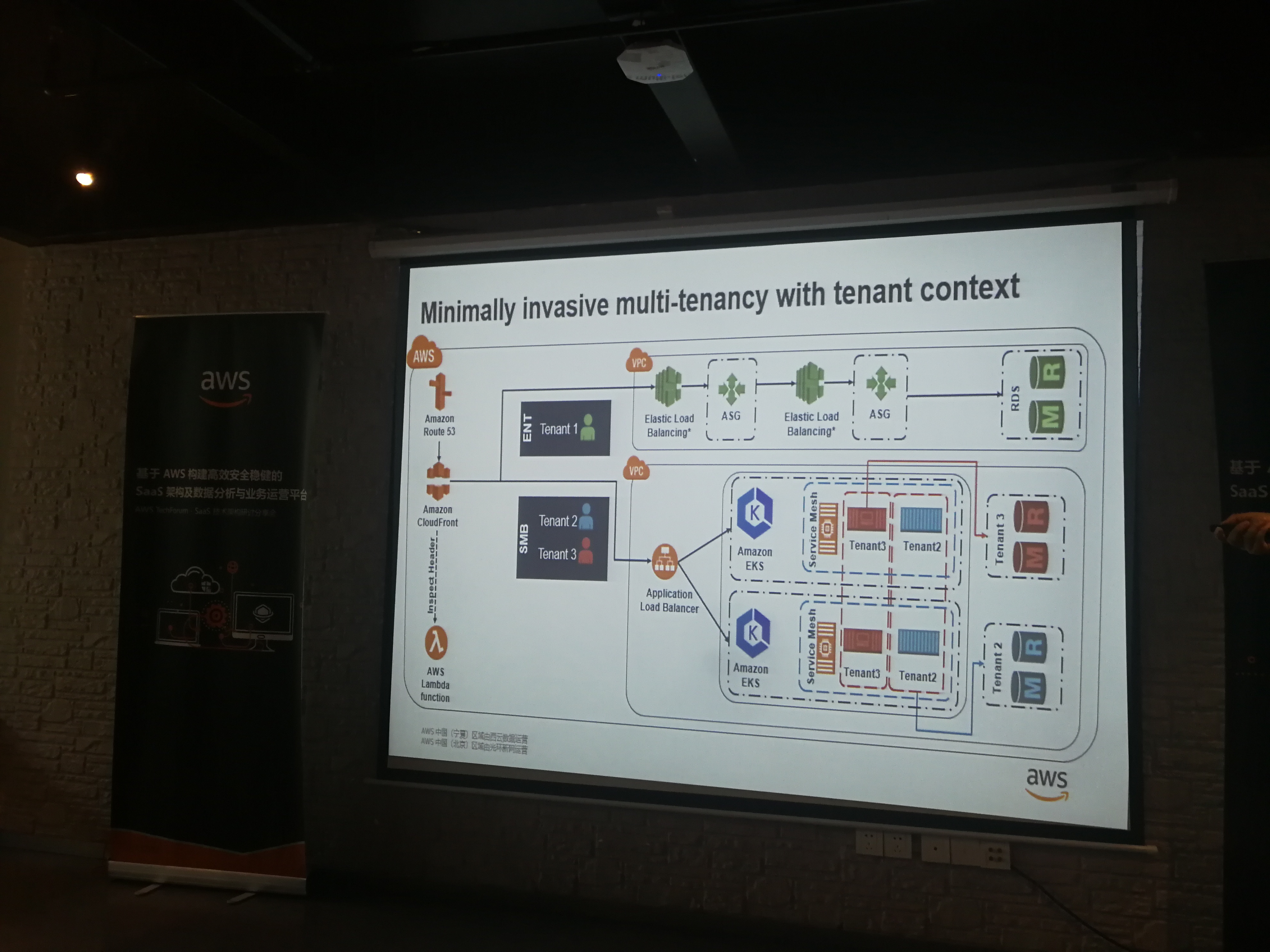 讲解AWS上构建SaaS的不同技术,EC2,ECS/EKS,Serverless。并分享了几个SaaS客户案例,从分享的案例来看,目前还是使用EC2的客户较多(重点分享了某ERP案例),部分客户使用ECS/EKS,使用Serverless的客户还没有。
