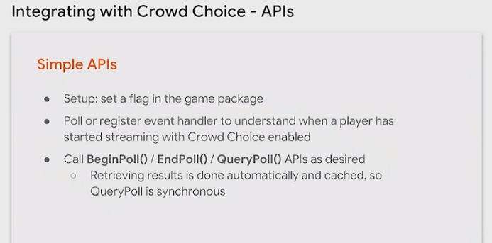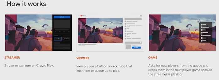 Crowd Play原理:主播开启Crowd Play,观众点按钮加入游戏,游戏通过Stadia SDK获取新加入的玩家。