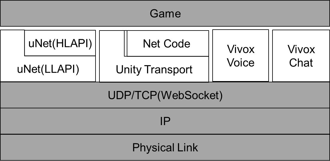 uNet Low Level API提供基础的网络通信能力:收发消息、QoS设置。传输协议为UDP,WebGL场景下使用WebSocket。