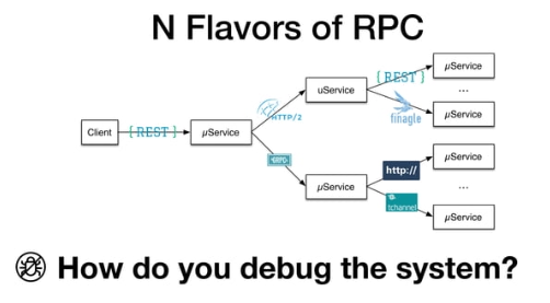 对于一个大型系统来说,标准化对于缩短问题定位与修复时间、提升系统韧性方面至关重要。作者举了一个例子,你能想象如何在下面这种应用系统里定位问题吗?