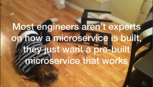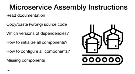大部分工程师并不清楚微服务是如何构建的,他们需要的是预构建好可工作的微服务(填充业务)。